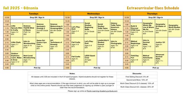 Our Gibsonia location at Church at the Heights will offer all these classes for Preschoolers through 10th graders