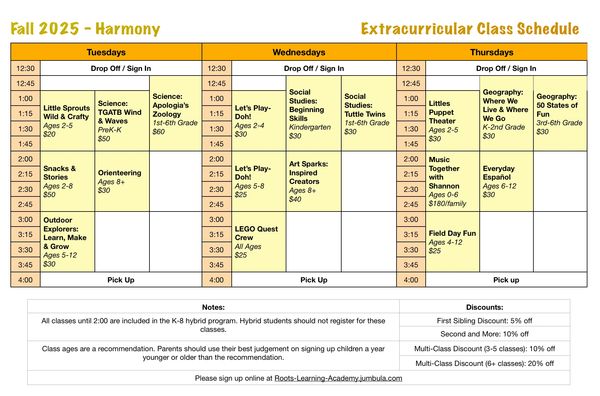 Our Harmony location at Zion Lutheran Church will offer classes for Preschoolers through 5th Graders